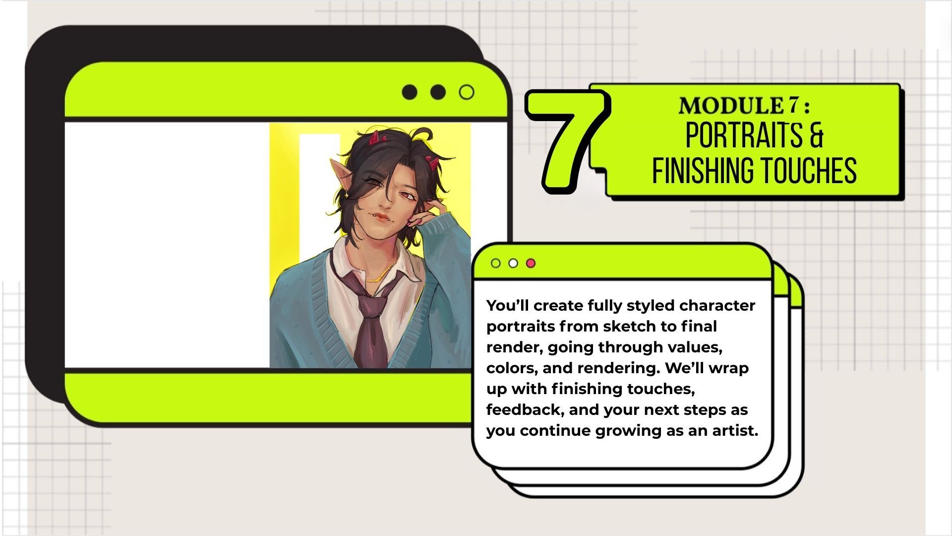 By the end, you won’t just have finished character portraits, you’ll have the skills and confidence to keep creating characters that feel alive and uniquely yours.